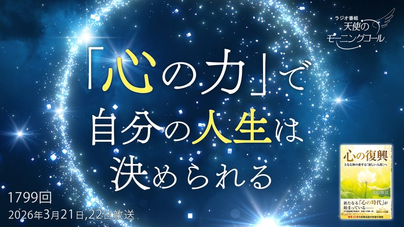 今年こそは良い年にしたい!とは思ってはいるけれども、なかなか自分の将来に対して積極的なイメージを持てない、明るいイメージを描けないという方もいらっしゃると思います。今週の天使のモーニングコールは、どんな状況の中に置かれたとしても、暗い思いを吹き飛ばして、明るく幸福な未来を創るための考え方を皆さんにお伝えしたいと思います!番組の中では、『夢人間』(作詞・作曲:大川隆法、歌:TOKMA)を紹介します♪お楽しみに!