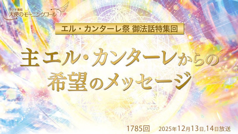 2025年もあと半月、皆さんの1年はどうでしたか?今年は個人の生活や日本国内、世界において、不安を感じていた方もいらっしゃるかもしれません。しかし、何があっても、主エル・カンターレは私たち一人ひとりに、国家に、そして世界に、希望の言葉を投げかけてくださっています。今回は、エル・カンターレ祭御法話特集として「主エル・カンターレからの希望のメッセージ」をお届けいたします。あなたの心にもきっと、希望の光が灯ります。番組後半では、12月14日落慶の神戸正心館・林雅敏館長のお話もお届けします。お楽しみに!