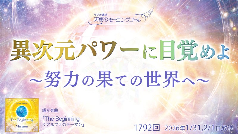 皆さんは努力しても道が開けないような経験はありますか?頑張っているはずなのに、時に現状から抜け出せず、努力逆転に陥ることもあります。今回は努力してきた人が、その努力の先にある世界、異次元パワーに目覚めるために必要な信仰心や神秘の力についてお伝えします。番組後半には楽曲「“The Beginning”<アルファのテーマ〉」(作詞作曲・大川隆法 歌・Michael James)もお送りします。お楽しみに!